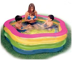 Этот очаровательный бассейн в форме звезды радостной насыщенной расцветки идеально подходит для детского и семейного отдыха.