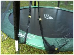 Для изготовления мата батута МВМ используется стойкая к воздействию ультрафиолетового излучения нелиняющая ткань, предназначенная для работы при особо высоких нагрузках, ткань прошита аккуратными и прочными швами.