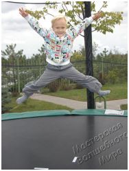 Модель батута МВМ оснащена стандартной мягкой прокладкой из пенорезины на основе вспенивающегося полиэтилена с высокой стойкостью к ударным нагрузкам. Кроме этого, поверх прокладки нанесен слой высококачественного полихлорвинилового покрытия толщиной 0,35 мм, что позволяет использовать батут вне помещений.