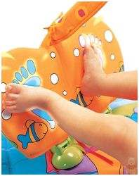 Хит продаж! Светомузыкальный развивающий коврик с игровым центром «Стукни и играй» («Kick&Play;»). Развивающий центр предназначен для малышей от 0 до 10 мес. В игровой комплекс входят: - 3 тканевых безопасных погремушки: утенок с бочонком-колокольчиком, жираф, львенок; - прорезыватель для зубов - 3 разноцветные бабочки на кольце держателе; - пластмассовая погремушка-прорезыватель; - большое безопасное зеркало в мягкой оправе крепится ремешками на липучках к дуге и коврику, его можно переместить или убрать; диаметр зеркала 25см. - игровой музыкальный центр «Стукни и играй» («Kick&Play;») с 2 режимами работы. Название развивающему комплексу дал музыкальный центр «Стукни и играй» («Kick&Play;») с двумя режимами работы. На музыкальной панели центра с одной стороны нарисованы ладошки, а с другой - ступни ног. Если по ним стукнуть, то начинают мигать огоньки и звучат голоса различных животных, а сами ладошки и ступни светятся. В зависимости от положения музыкальной панели: вертикальном (стучим ножкой), или горизонтальном (стучим ручкой), а так же от того какой ручкой или ножкой ударит малыш, звучат разные музыкальные композиции и голоса животных.