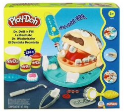 Набор юного стоматолога Для детей от 3 лет. Теперь ребенок сможет не только без страха ходить к стоматологу, но и готовиться стать дантистом!... (бывают и такие мечты у детей) Работаем с пластилином, развиваем мелкую моторику и тактильные ощущения, преодолеваем страх перед стоматологом! Состав набора: - голова пациента (из четырех частей - верхней и нижней челюстей и двух ушей) - ручная бормашина (работает от батарейки 1,5 В, пальчиковой, в комплект входит) - пинцет - играет роль щипцов для удаления зубов - зеркало стоматолога - подставка для изготовления зубов - 1 баночка с мягким белым пластилином для изготовления зубов - 1 баночка с красным мягким пластилином - для языка - 1 баночка с серебряным пластилином - для пломб.