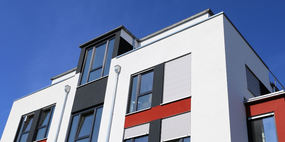 - Фасады жилых и коммерческих зданий. Краска защищает стены от осадков, ветра и агрессивных условий окружающей среды.